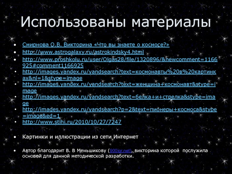 Смирнова О.В. Викторина «Что вы знаете о космосе?»