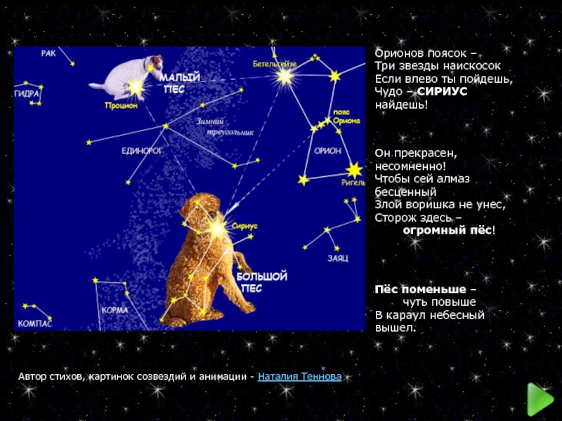 Автор стихов, картинок созвездий и анимации - Наталия Теннова