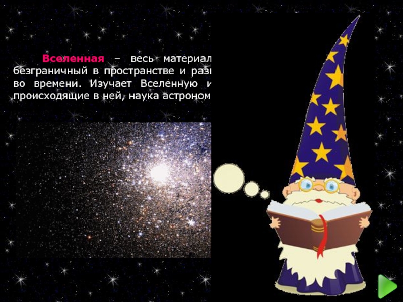 Слайд 3 Вселенная – весь материальный мир, безграничный в пространстве
