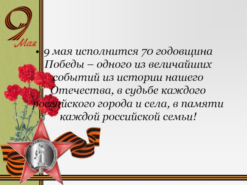 9 мая исполнится 70 годовщина Победы – одного из величайших