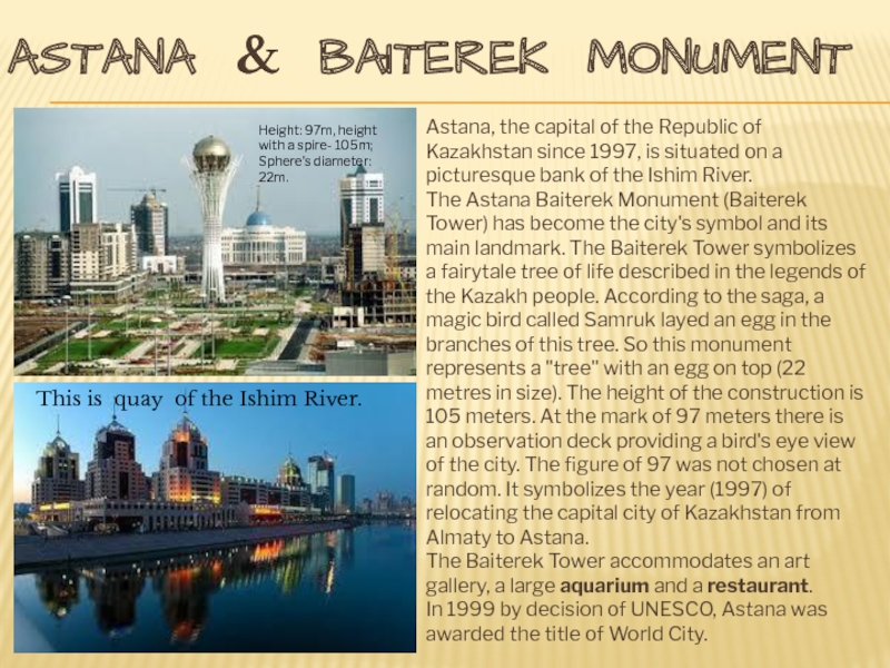 Height: 97m, height with a spire- 105m; Sphere’s diameter: 22m.