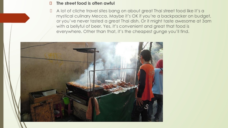 The street food is often awfulA lot of cliche travel sites bang on about great Thai street food