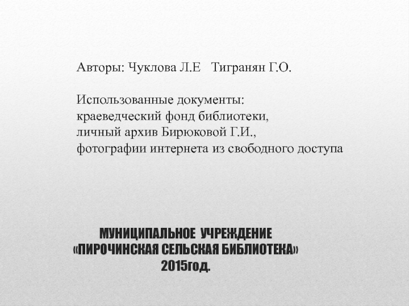 Авторы: Чуклова Л.Е Тигранян Г.О.