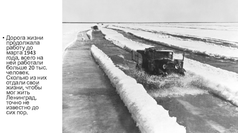 Слайд 10Дорога жизни продолжала работу до марта 1943 года, всего на