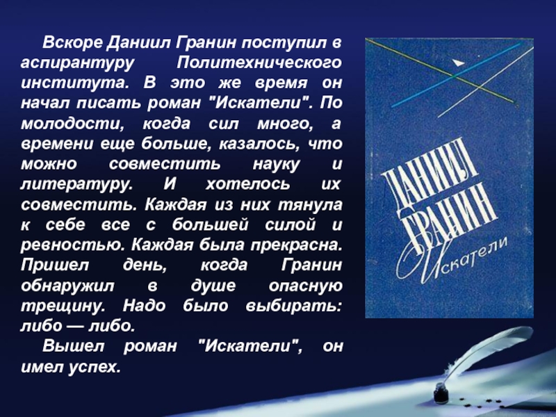 Слайд 7Вскоре Даниил Гранин поступил в аспирантуру Политехнического института. В это