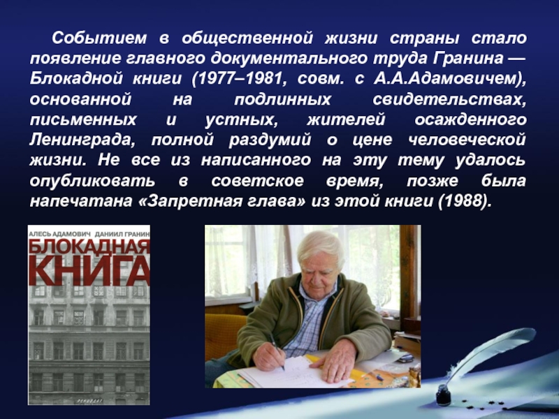 Гранина — Блокадной книги (1977–1981, совм. с А.А.Адамовичем), основанной на