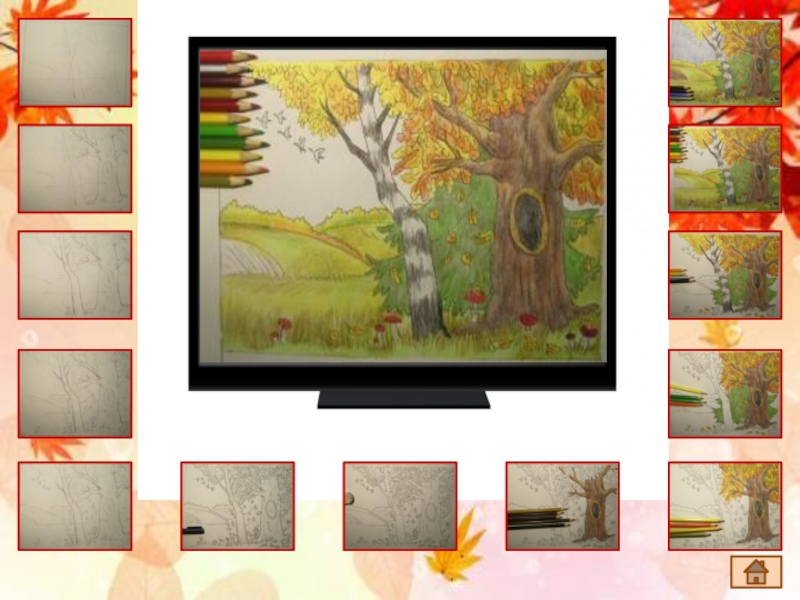 Слайд 1Давайте нарисуем осень в лесу карандашами