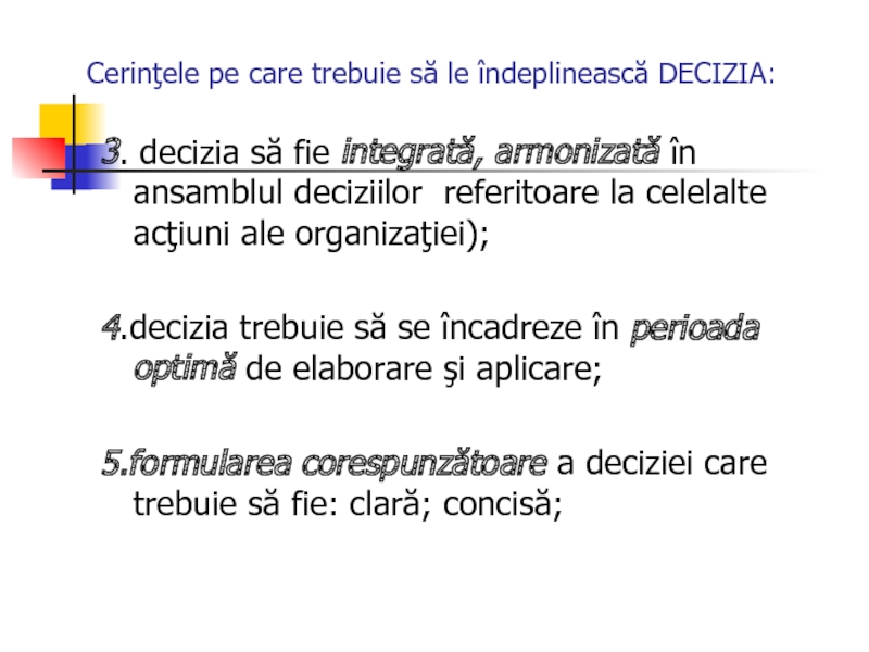 Слайд 14Cerinţele pe care trebuie să le îndeplinească DECIZIA: