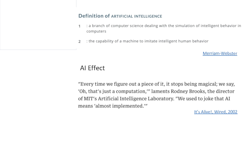 Merriam-WebsterIt’s Alive!, Wired, 2002 AI Effect