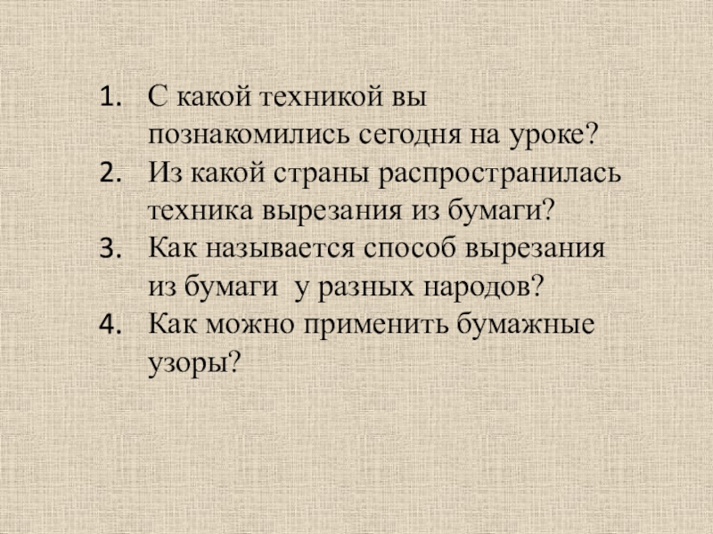 Искусные вырезки из бумаги покорили многие страны: Италию, Испанию, Францию, Англию, Германию, Россию и другие. Они прижились настолько, что их считают своим исконным ремеслом многие народы. Ныне многие из старинных образцов хранятся в различных музеях мира. По прошествии времени эти радующие глаз произведения народной фантазии кажутся еще более привлекательными и эстетически ценными.