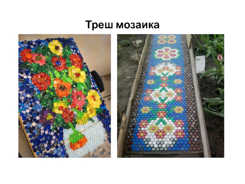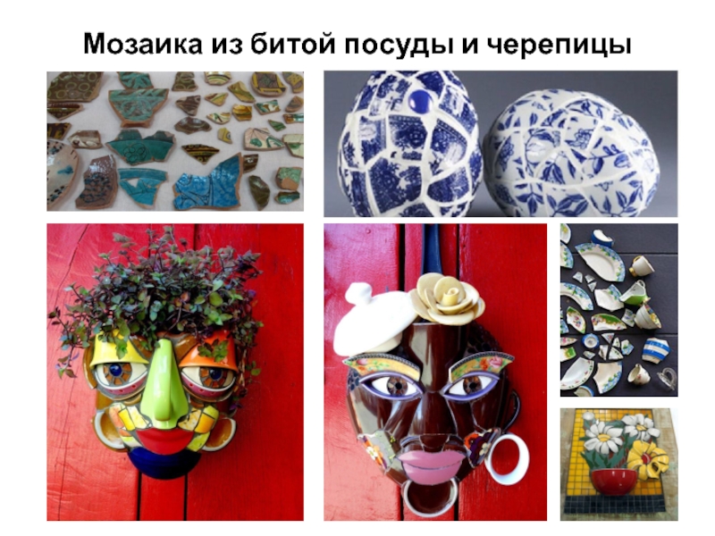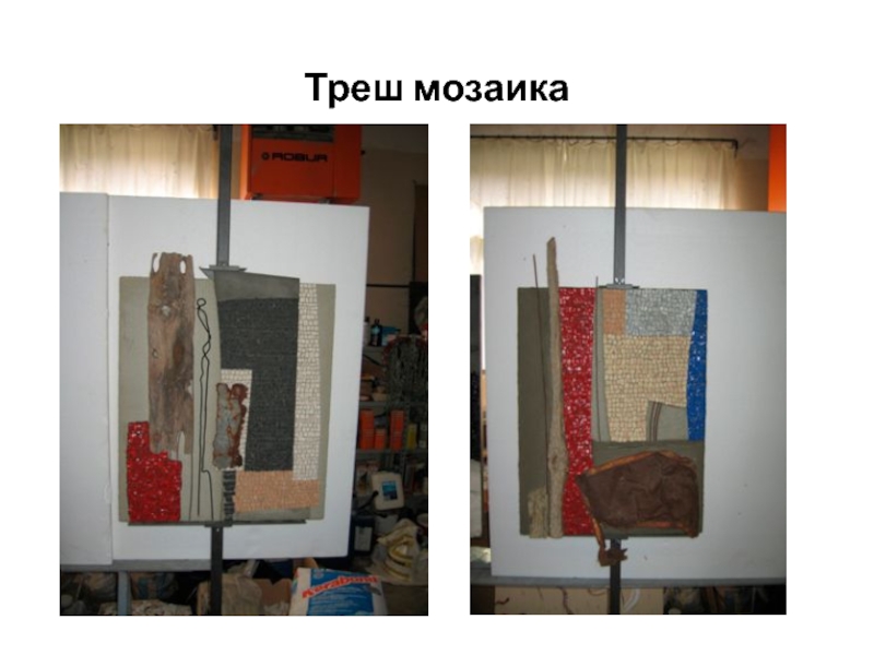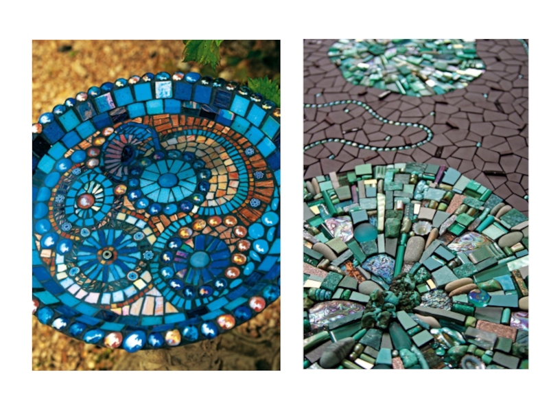 для достижения самых смелых идей художники применяют сочетания смальты, металла, дерева, полимеров, керамики, стекла и разнообразных подручных предметов, которые могут оказаться и просто мусором.