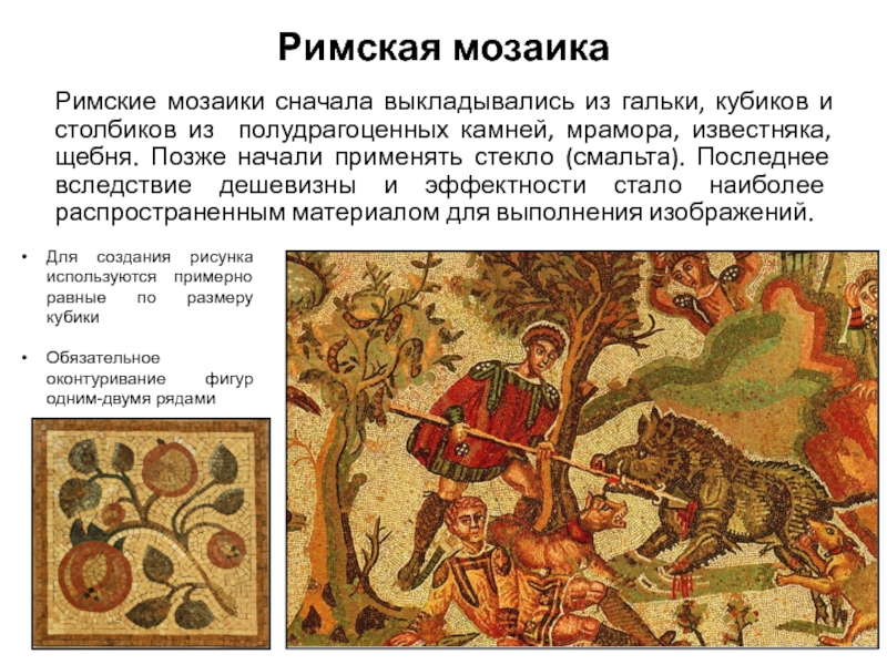 Римские мозаики сначала выкладывались из гальки, кубиков и столбиков
