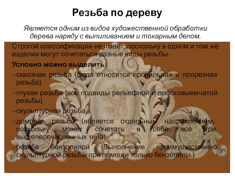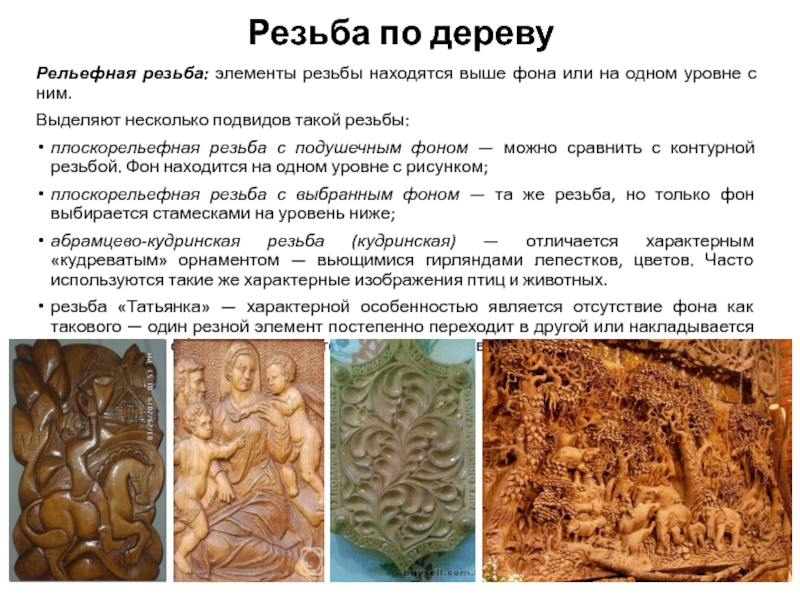Рельефная резьба: элементы резьбы находятся выше фона или