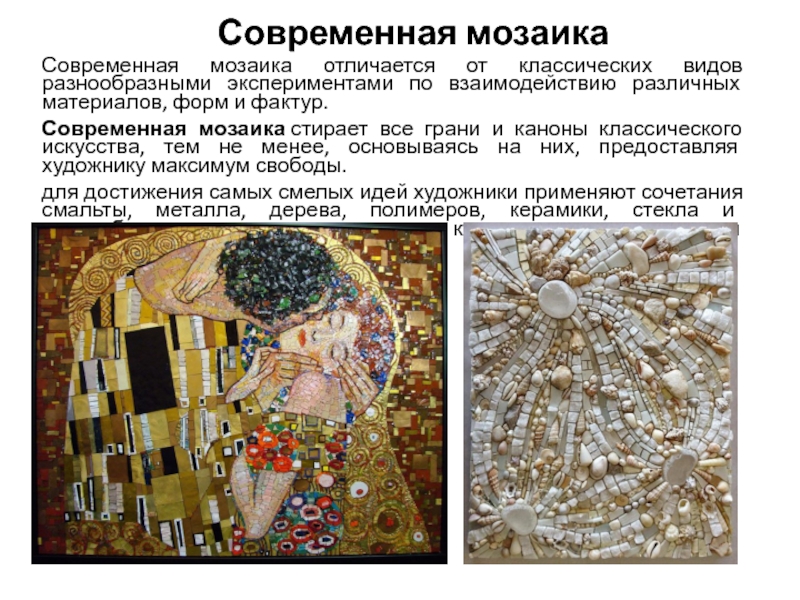 Современная мозаика отличается от классических видов разнообразными экспериментами по