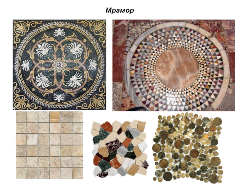 из полудрагоценных камней, мрамора, известняка, щебня. Позже начали применять стекло