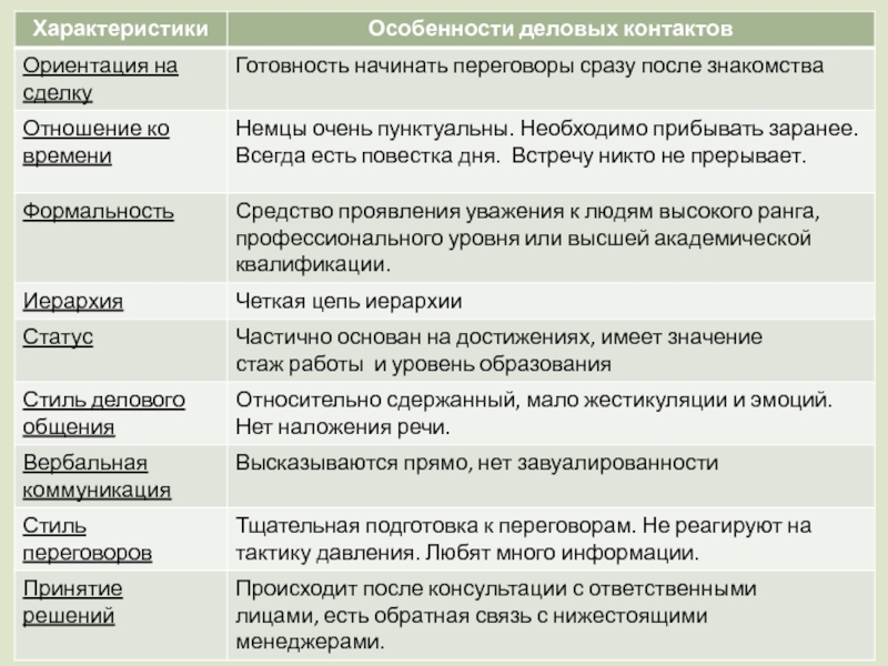 as direct and expressive, with a small proportion of the place of verbal forms of communication. The Germans clearly evaluate the issues under discussion, and evaluation without evidence is regarded as a lack of competence. The speech can be found open expression of discontent.Interpersonal relationships did not last long and shallow.