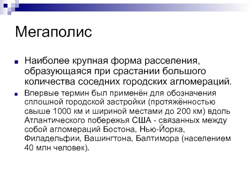 Наиболее крупная форма расселения, образующаяся при срастании большого количества соседних