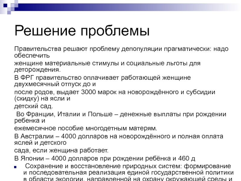 и социальные льготы для деторождения.