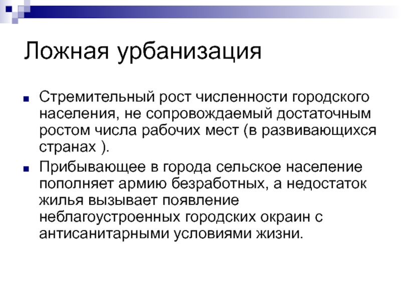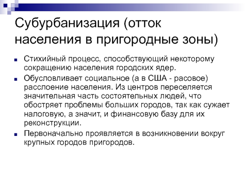 обострение социальных проблем (рост преступности, концентрация маргинальных групп населения).