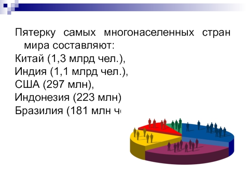 Слайд 8Пятерку самых многонаселенных стран мира составляют: