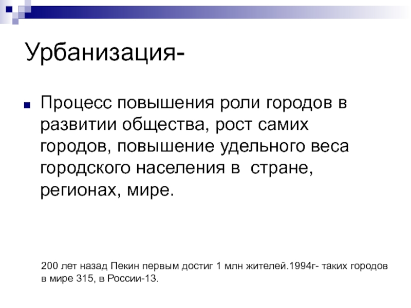 с ним и «дезурбанизации» (сокращение численности населения крупных городов и их относительного производственного потенциала);
