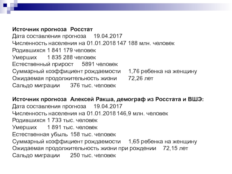 Источник прогноза Росстат