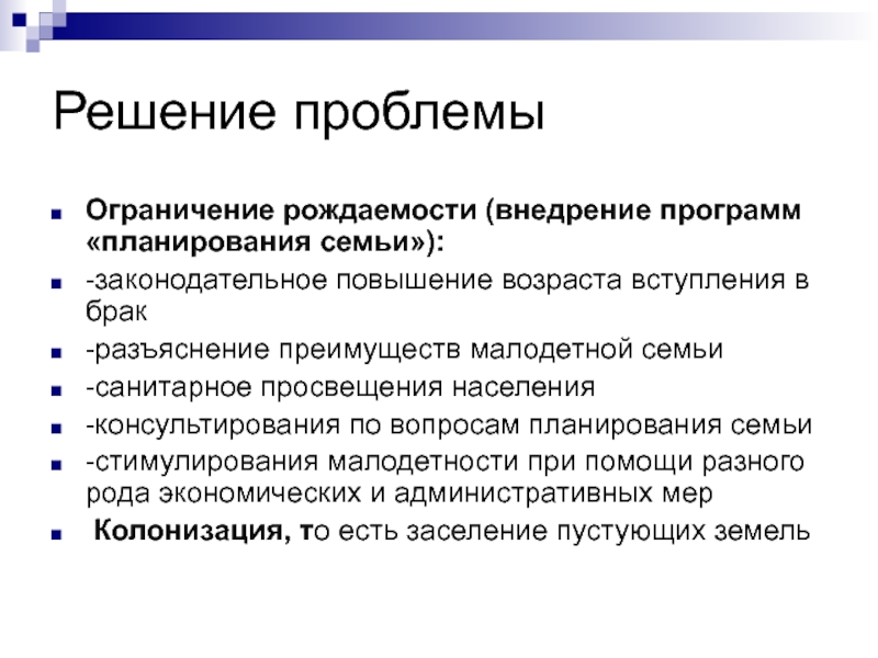 Ограничение рождаемости (внедрение программ «планирования семьи»):
