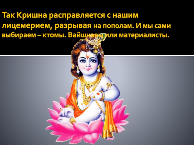 Слайд 8Так Кришна расправляется с нашим лицемерием, разрывая на пополам. И