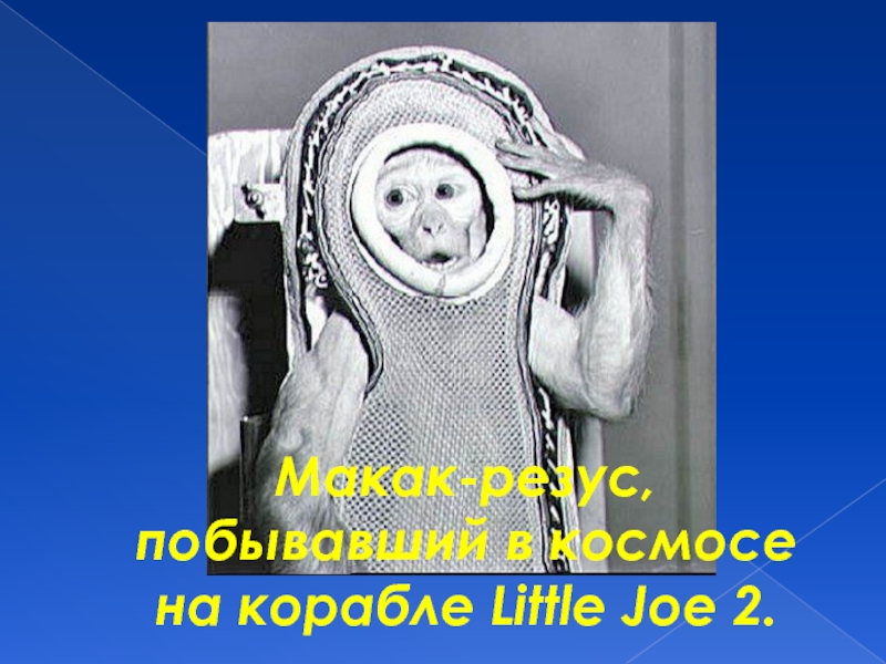 Слайд 7Макак-резус, побывавший в космосе на корабле Little Joe 2.