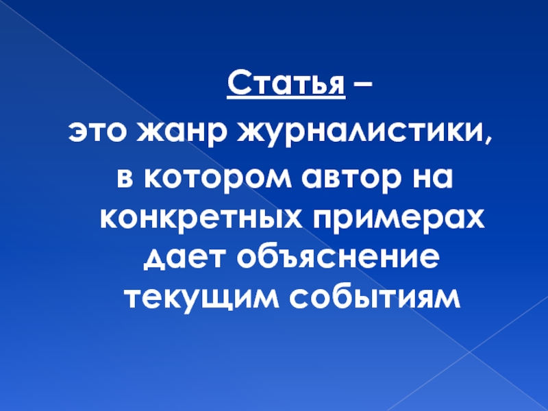 Статья – это жанр журналистики, в котором автор на конкретных примерах дает объяснение текущим событиям