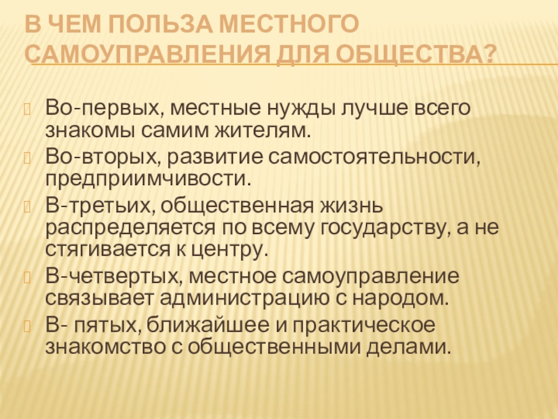 В-четвертых, местное самоуправление связывает администрацию с народом.