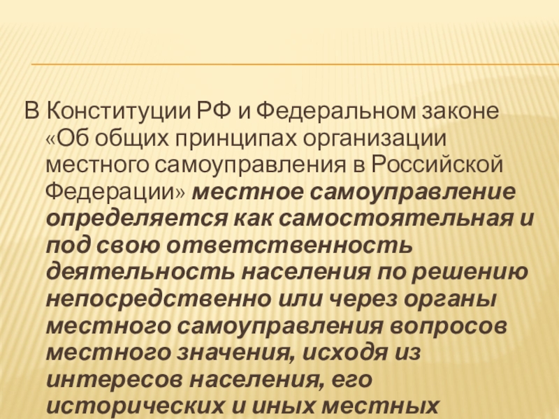 Слайд 4В Конституции РФ и Федеральном законе «Об общих принципах организации
