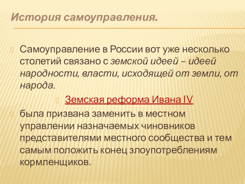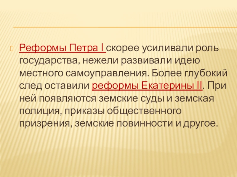 местного самоуправления. Более глубокий след оставили реформы Екатерины II. При