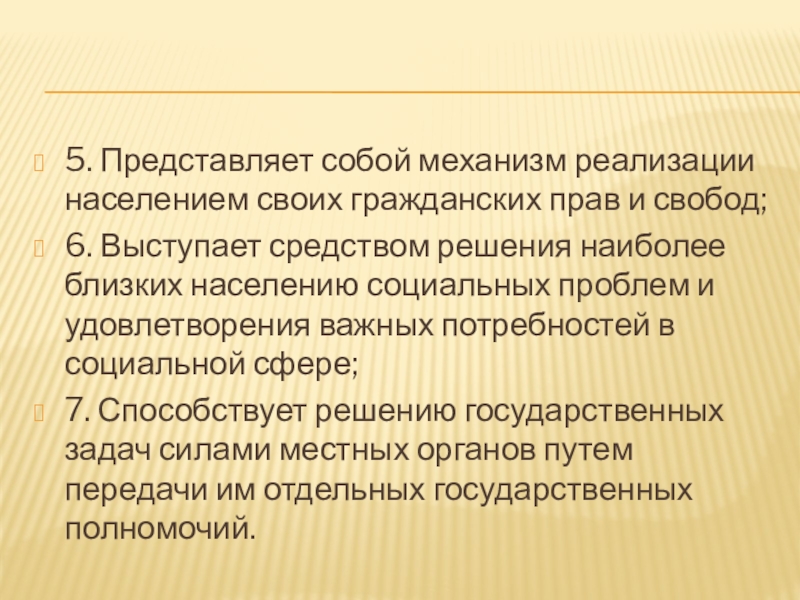 6. Выступает средством решения наиболее близких населению социальных проблем и