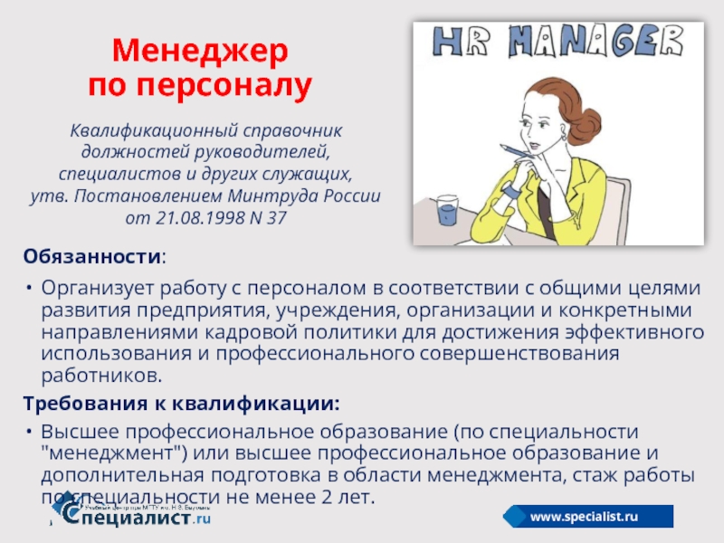 Квалификационный справочник должностей руководителей, специалистов и других служащих,
