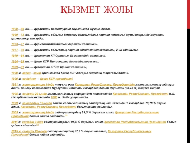 Слайд 5Қызмет жолы