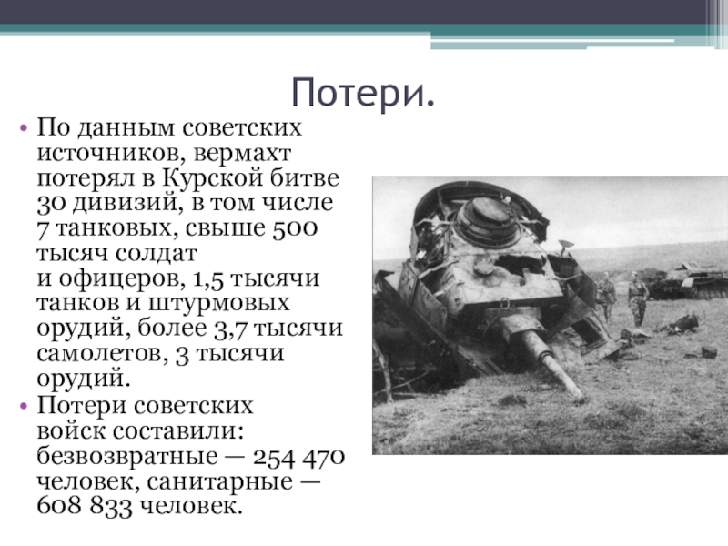 По данным советских источников, вермахт потерял в Курской битве 30 дивизий,