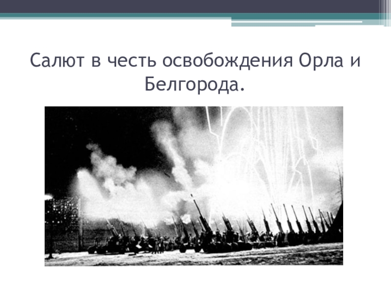 Слайд 14Салют в честь освобождения Орла и Белгорода.