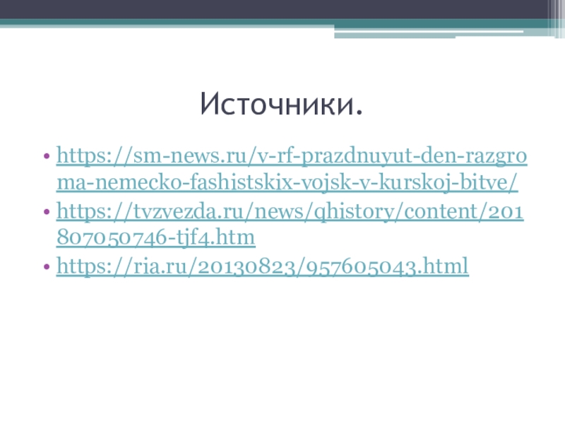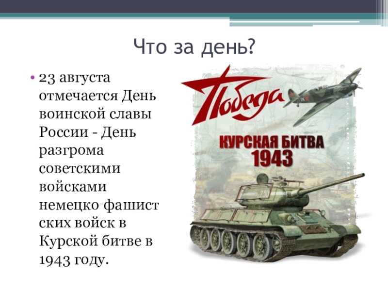 Слайд 1День разгрома немецко-фашистких войск в Курской битве.
