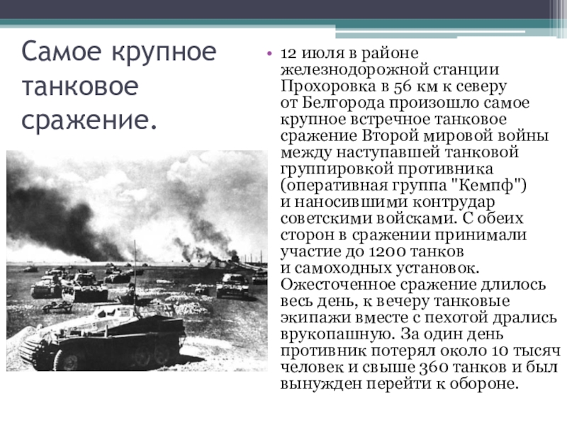 км к северу от Белгорода произошло самое крупное встречное танковое сражение Второй