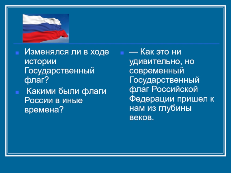 Государственный флаг Российской Федерации пришел к нам из глубины веков.
