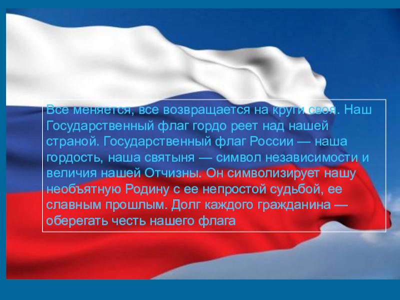 Слайд 24Все меняется, все возвращается на круги своя. Наш Государственный флаг