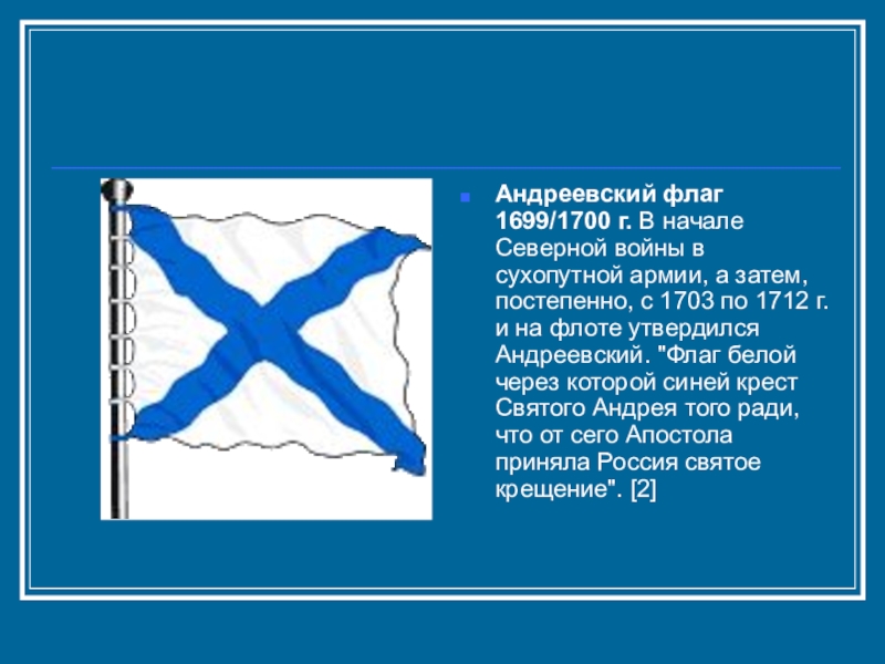 Слайд 16Андреевский флаг 1699/1700 г. В начале Северной войны в сухопутной