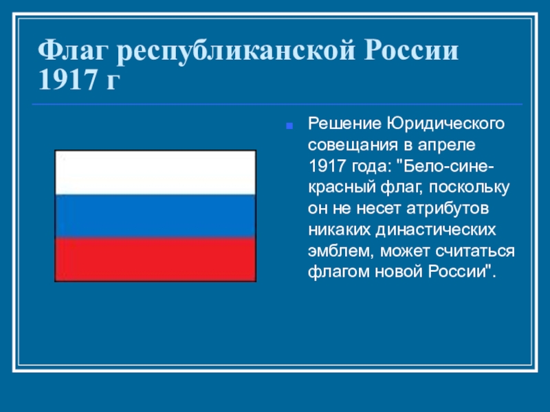 1917 года: "Бело-сине-красный флаг, поскольку он не несет атрибутов никаких