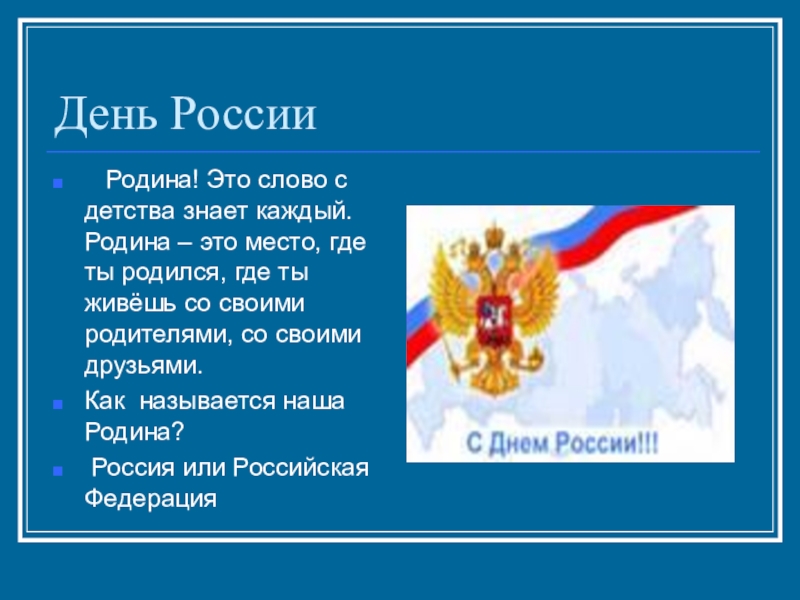 гордо реет над нашей страной. Государственный флаг России — наша гордость,