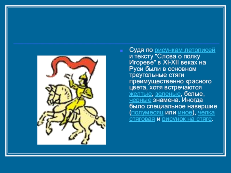 Слайд 11Судя по рисункам летописей и тексту "Слова о полку Игореве"