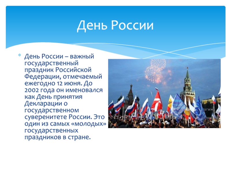 Декларации о государственном суверенитете России. Это один из самых «молодых» государственных праздников в стране.День России