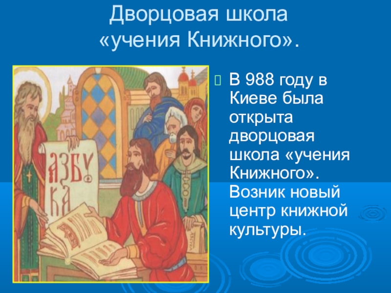дворцовая школа «учения Книжного». Возник новый центр книжной культуры.