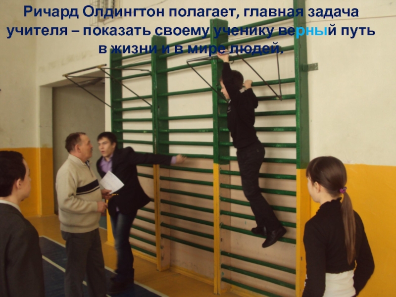 Слайд 21Ричард Олдингтон полагает, главная задача учителя – показать своему ученику