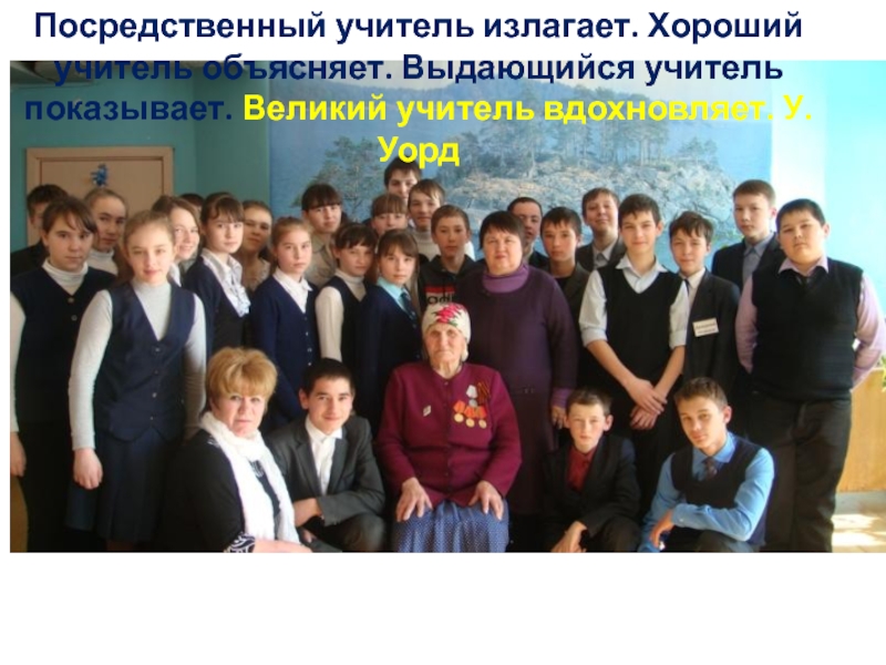 Слайд 48Посредственный учитель излагает. Хороший учитель объясняет. Выдающийся учитель показывает. Великий